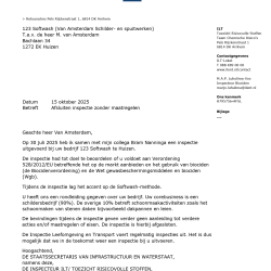 Op 30 juli 2025 heeft de ILT een inspectie uitgevoerd bij ons bedrijf in Huizen. Tijdens deze controle werd beoordeeld of wij voldoen aan: